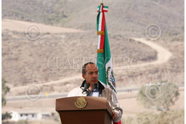 TIJUANA, BAJA CALIFORNIA, 05NOVIEMBRE2009.- Felipe Calderón, Presidente de México, durante la inauguración del tramo carretero San Antonio-Ensenada. FOTO: ALFREDO GUERRERO/CUARTOSCURO.COM
