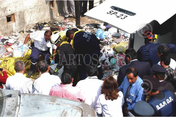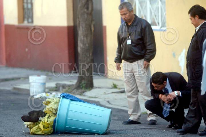 MÉXICO, D.F., 26MARZO2009.- Restos humanos fueron encontrados al interior de un tambo de pintura el cual contenía cemento y basura entre lo que se dejaba ver una pierna humana, por lo que asistieron peritos de la Procuraduria General de Justicia del Distrito Federal para el levantamiento del mismo y llevar acabo los peritajes de rutina en la agencia correspondiente. El hayasgo se dio en las calles Peñon y Santa Lucia de la colonia Morelos perímetro de la delegación Cuauhtemoc. FOTO: LUIS CARBAYO/CUARTOSCURO.COM