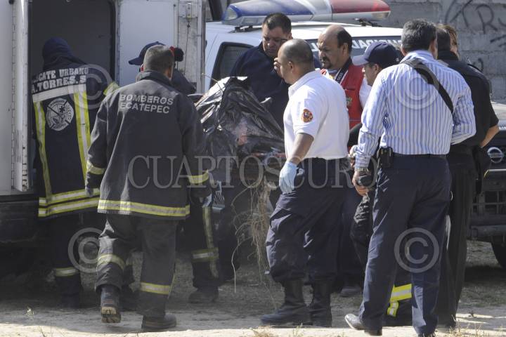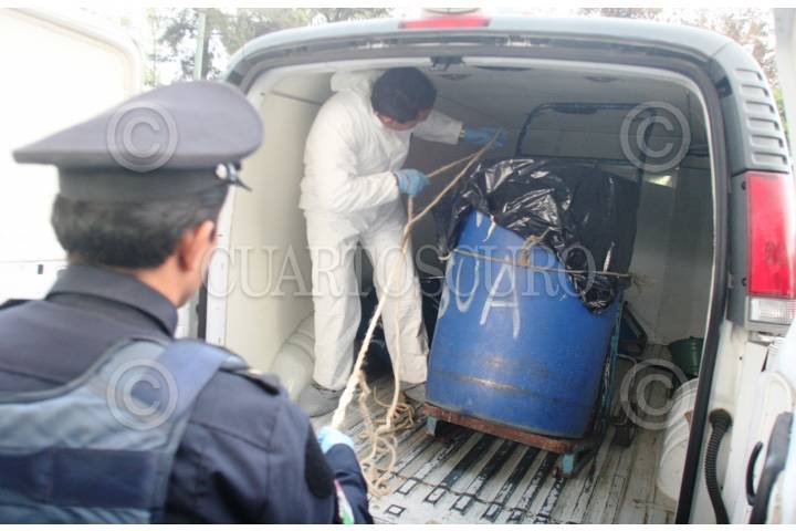 ECATEPEC, ESTADO DE MÉXICO, 03DICIEMBRE2012.- El cuerpo de una persona de la que se desconoce el sexo, fue hallado al interior de un tambo, tapado con bolsas negras. El cuerpo fue abandonado en la calle Valle de Tapajos y Valle de Tazones en la colonia Valle de Áragon. Elementos periciales acudieron al lugar para tomar conocimiento del hallazgo y trasladarlo al anfiteatro local. FOTO: LUIS CARBAYO /CUARTOSCURO.COM
