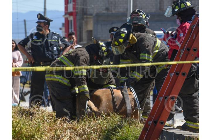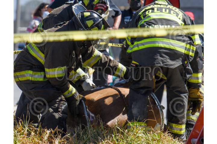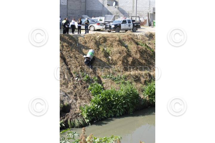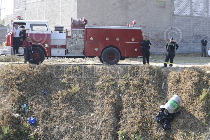 Bomberos de Toluca realizaron el rescate de un tambo que contenía los restos de un hombre, el cual fue arrojado a un canal de aguas negras en la comunidad de El Tejocote en Toluca.