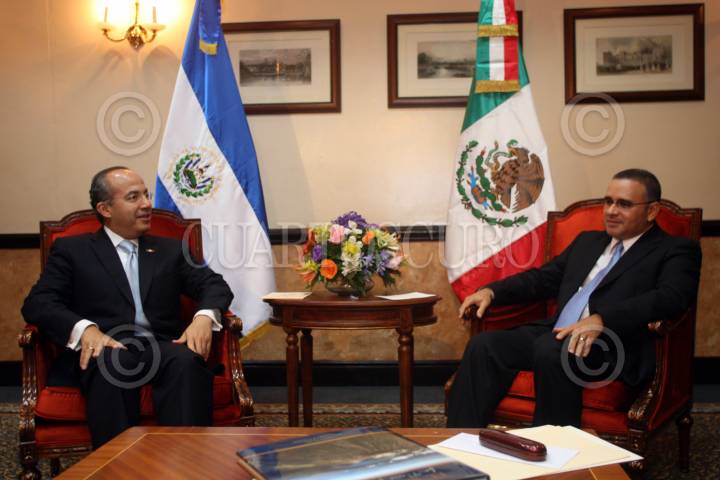 SAN SALVADOR 31MAYO2009.- Felipe Calderon Hinojosa Presidente de México adurante la reunión bilateral con Funes Cartagena Presidente electo de la República del Salvador FOTO:ALFREDO GUERRERO/CUARTOSCURO.COM