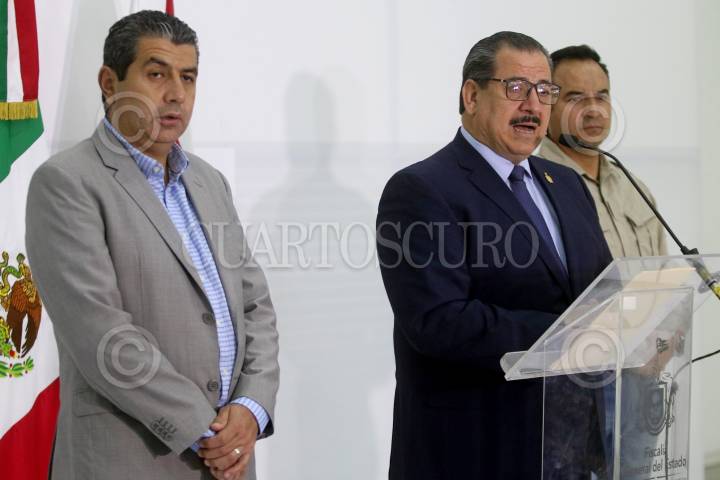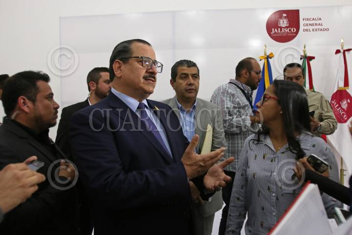 GUADALAJARA, JALISCO, 23ABRIL2018.- Raúl Sánchez Jiménez Fiscal General del Estado, encabezo una conferencia de prensa en las instalaciones de la Fiscalía para informar que Salomón Aceves, Daniel Díaz y Marcos García, estudiantes de la carrera de cine de la Universidad de Medios Audiovisuales del CAAV desaparecidos el pasado 19 de Marzo, fueron encontrados disueltos en acido en una finca de la calle Prado Soleado en la colonia Rancho de la Cruz del municipio de Tonalá el pasado miércoles, también comento que los alumnos fueron victimados por integrantes de una célula criminal que opera en la entidad. FOTO: CUARTOSCURO.COM