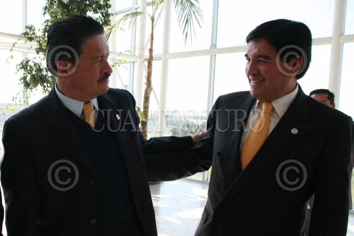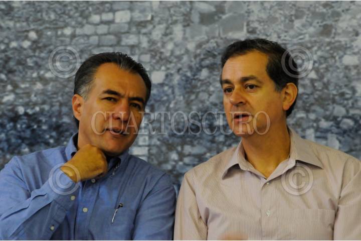 PACHUCA, HIDALGO, 21OTCUBRE2009.- Los senadores del PRD, Carlos Navarrete y José Guadarrama Márquez, durante la presentación de la propuesta económica del PRD en en esta entidad. FOTO: CUARTOSCURO.COM