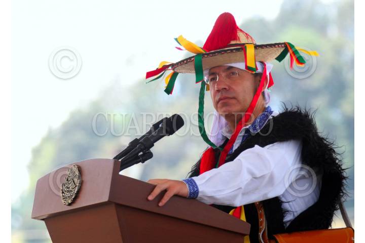 SAN JUAN CHAMULA, CHIAPAS, 07MAYO2010.- Felipe Calderón, Presidente de México durante la inauguración del mercado de San Juan Chamula que se llevo a cabo en la entidad. FOTO: ALFREDO GUERRERO/CUARTOSCURO.COM