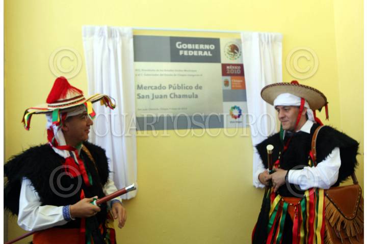 SAN JUAN CHAMULA, CHIAPAS, 07MAYO2010.- José Ángel Cordoba Villalobos, Secretario de Salud, junto a Felipe Calderon, Presidente de México durante la inauguración del mercado de San Juan Chamula que se llevo a cabo en la entidad. FOTO: ALFREDO GUERRERO/CUARTOSCURO.COM