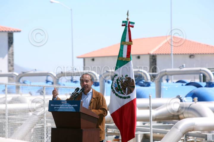 CADEREYTA DE MONTES, QUERETARO, 17FEBRERO2011.- El presidente Felipe Calderon durante la puesta en servicio del Acueducto II de Queretaro que se realizo en dicha entidad. FOTO: ALFREDO GUERRERO/CUARTOSCURO.COM