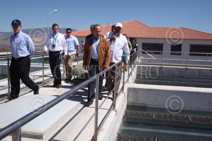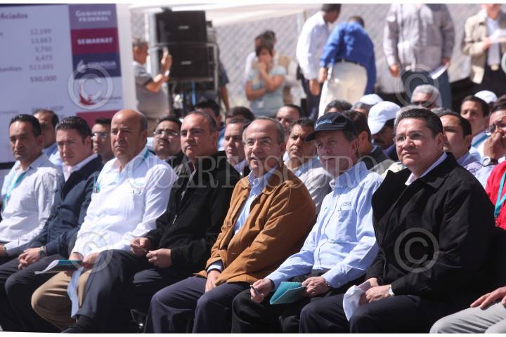 CADEREYTA DE MONTES, QUERETARO, 17FEBRERO2011.- El presidente Felipe Calderon acompañado de José Luis Luege Tamargo, titular de Conagua y de José Calzada Rovirosa, gobernador del estado durante la puesta en servicio del Acueducto II de Queretaro que se realizo en dicha entidad. FOTO: ALFREDO GUERRERO/CUARTOSCURO.COM