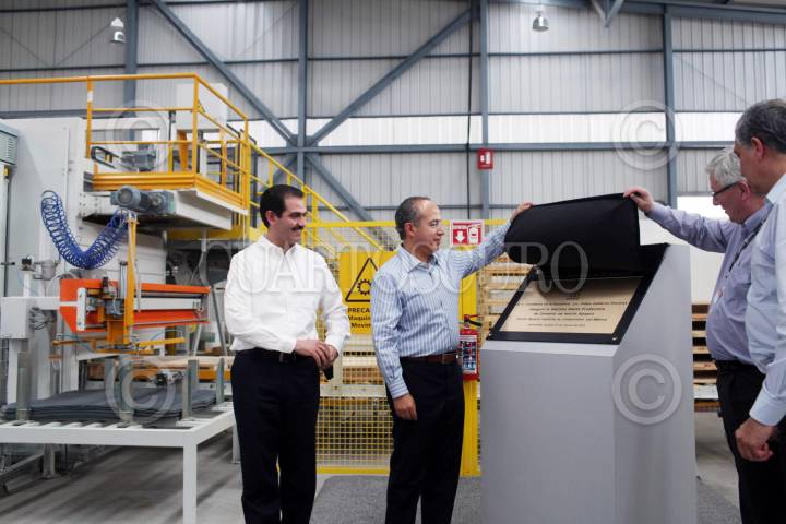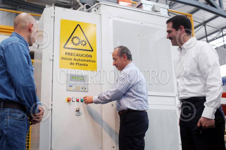 HERMOSILLO, SONORA, 10MARZO2011.- El presidente Felipe Calderón, acompañado de Guillermo Padres, gobernador de la entidad durante la inauguración de la planta productora de cemento Hocim Apasco que se realizo en esta entidad. FOTO: ALFREDO GUERRERO/CUARTOSCURO.COM
