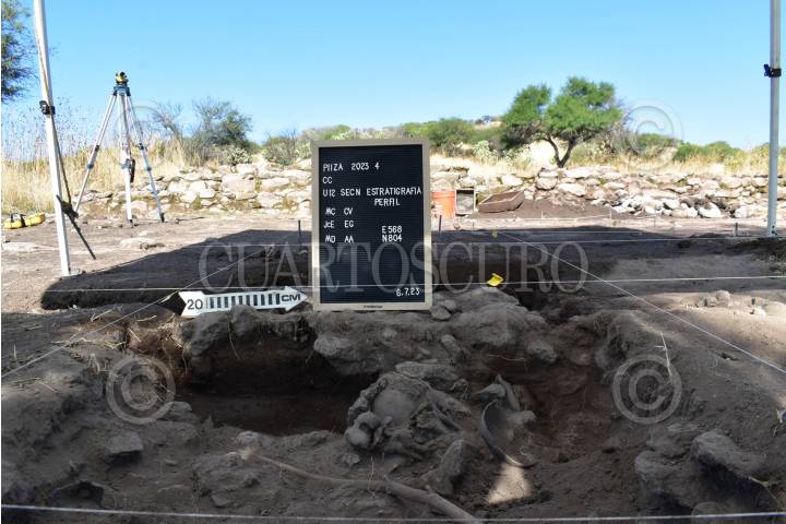 Descubren entierro múltiple en la Zona Arqueológica de La Ferrería, en Durango.