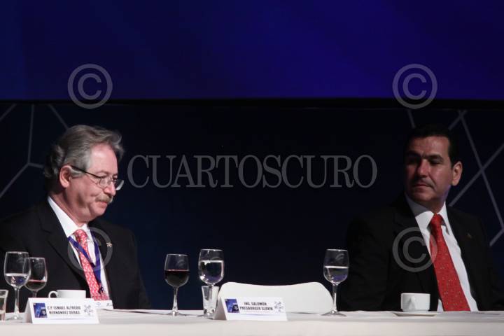 MÉXICO, D.F., 23MARZO2009.- Salomón Presburguer Presidente entrante de la CONCAMIN, Ismael Plascencia Nuñez Presidente Saliente de la confederación de Cámaras Industriales de los Estados Unidos Mexicanos durante la 91 asamblea general ordinaria de la (CONCAMIN) FOTO: SÁSHENKA GUTIERREZ/CUARTOSCURO.COM