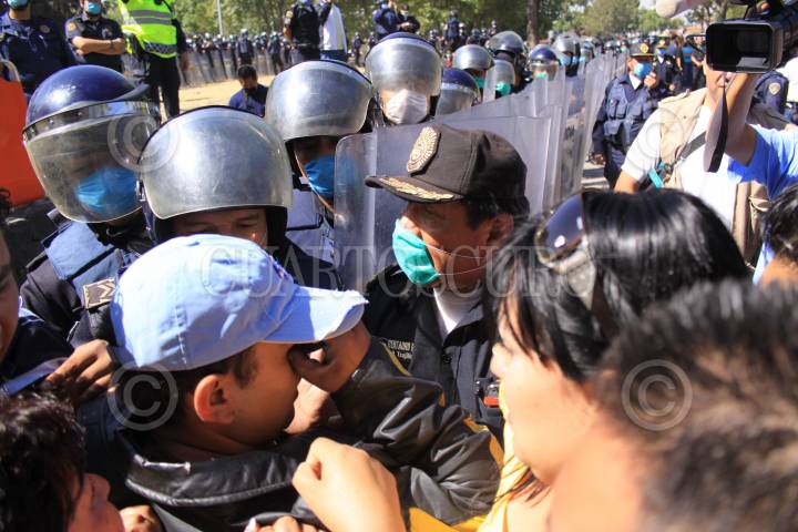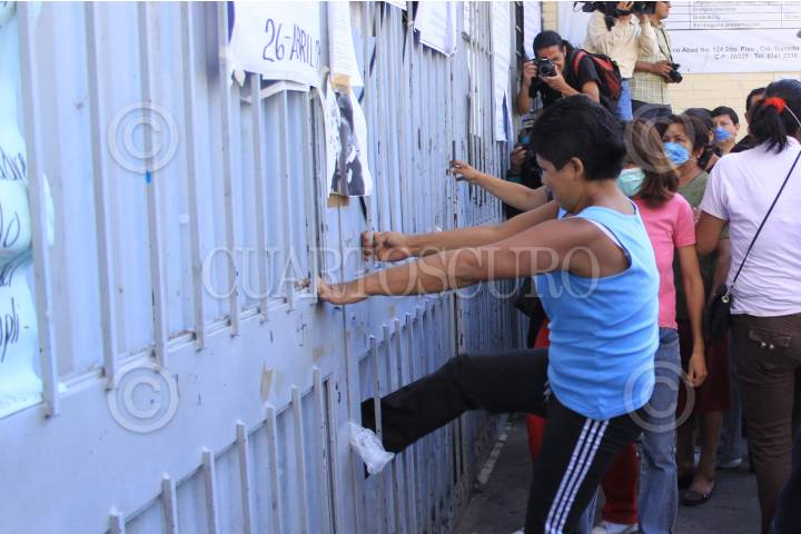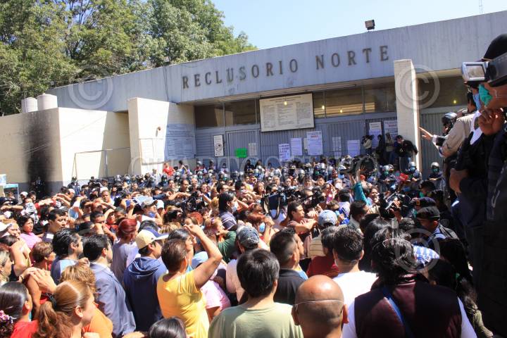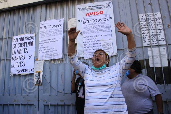 MÉXICO, D.F., 01MAYO2009.- Familiares de internos del reclusorio Norte entran por la fuerza a la entrada principal del reclusorio en donde exigieron entrar al reclusorio para poder ver a sus familiares después de que los internos intentara amotinarse después de que restrigieron las visitas durante el fin de semana a las cárceles capitalinas, como medida de prevención para evitar la propagación del virus de la influenza humana. FOTO: SÁSHENKA GUTIÉRREZ/CUARTOSCURO.COM