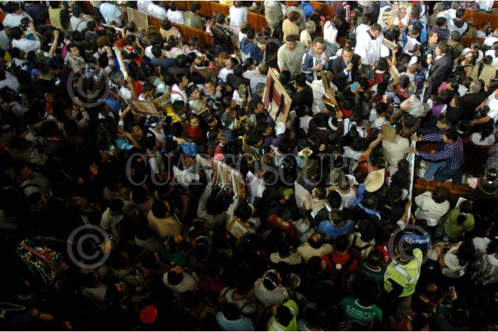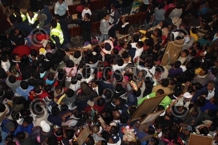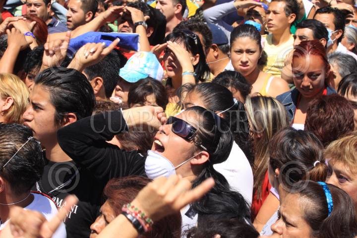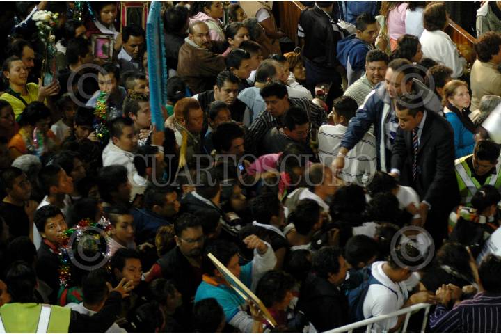 MÉXICO D.F., 12DICIEMBRE2009.- Cientos de peregrinos se amontonan en las entradas e incluso algunos se desmayan ya que intentan entrar a la Basilica de Guadalupe en este día que se celebra el 478 aniversario de su aparición en el cerro del Tepeyac. FOTO: RODOLFO ANGULO/CUARTOSCURO.COM