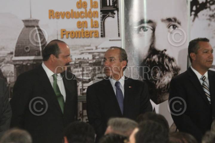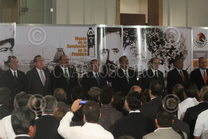 CIUDAD JUÁREZ, CHIHUAHUA, 21MAYO2011.- El Museo de la Revolución en la Frontera (MUREF) fue inaugurado la noche de este viernes por el jefe del Ejecutivo federal, Felipe calderón, acompañado del Gobernador del Estado, César Duarte Jáquez, en ceremonia concurrida por funcionarios de los tres niveles de gobierno, entre estos el el alcalde, Héctor Murguía Lardizábal. FOTO: NACHO RUÍZ/CUARTOSCURO.COM