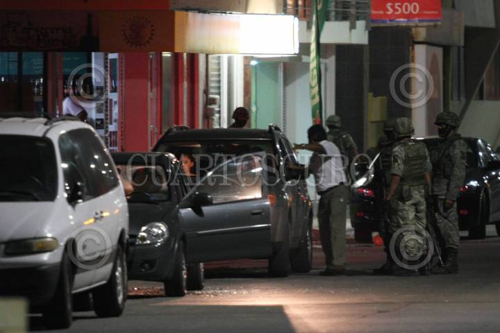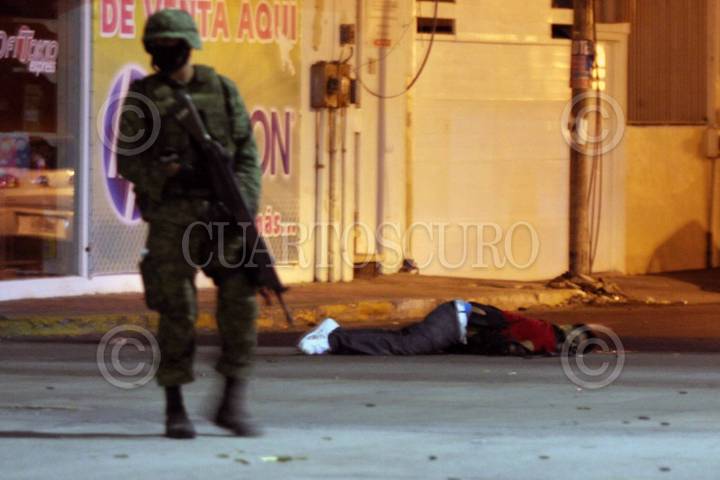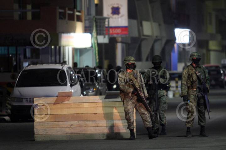 BOCA DEL RÍO, VERACRUZ., 21MAYO2011.- Nuevamente la zona turística de esta ciudad fue escenario de un sangriento enfrentamiento entre elementos de la Secretaría de Marina y presuntos integrantes de la delincuencia organizada, el saldo que se dio a conocer fue de 5 personas muertas, 1 soldado herido y un arsenal decomisado, lo que provocó que se montara un cerco militar con barricadas por el Boulevard Manuel Ávila Camacho y la Avenida Ruiz Cortines. FOTO: FÉLIX MÁRQUEZ/CUARTOSCURO.COM