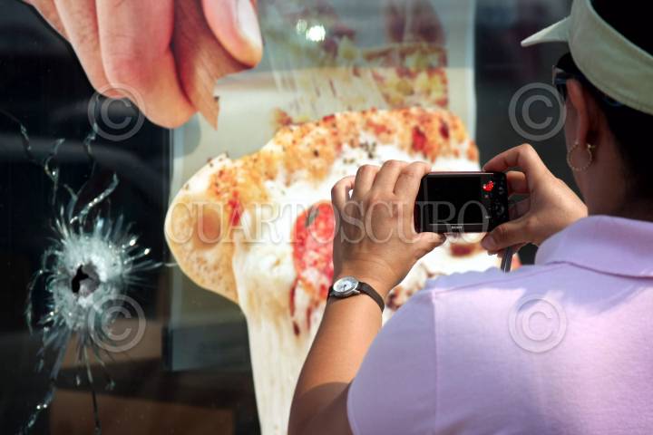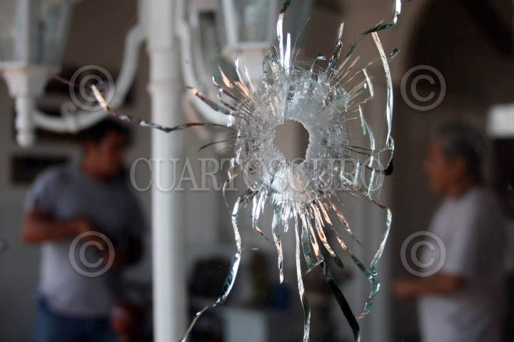 BOCA DEL RÍO, VERACRUZ., 21MAYO2011.- Aspectos de los daños provocados por el enfrentamiento de esta madrugada entre fuerzas federales y presuntos miembros de la delincuencia organizada, donde al menos 15 vehículos y diversos negocios presentan impactos de arma de fuego. FOTO: FÉLIX MÁRQUEZ/CUARTOSCURO.COM