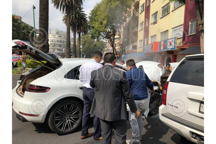 CIUDAD DE MÉXICO, 18SEPTIEMBRE2018.- Choque vehicular entre un Porsche y una camioneta de escoltas sobre la diagonal San Antonio en la colonia Narvarte luego de que el Porsche iba a exceso de velocidad pues era perseguido por unos asaltantes. FOTO: ARMANDO MONROY /CUARTOSCURO.COM