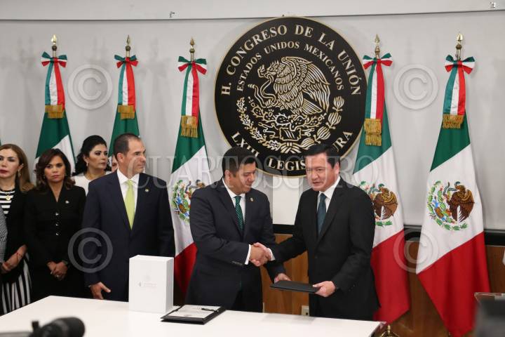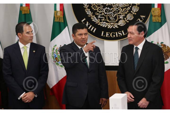 CIUDAD DE MÉXICO, 01SEPTIEMBRE2016.- Miguel Ángel Osorio Chong Secretario de gobernación entregó ante los representanes del Congreso de la Unión, Javier Bolaños y Pablo Escudero el cuarto informe de gobierno del presiente de México, Enrique Peña Nieto, en el salon de protocolos de la Cámara de Diputados. FOTO: SAÚL LÓPEZ /CUARTOSCURO.COM
