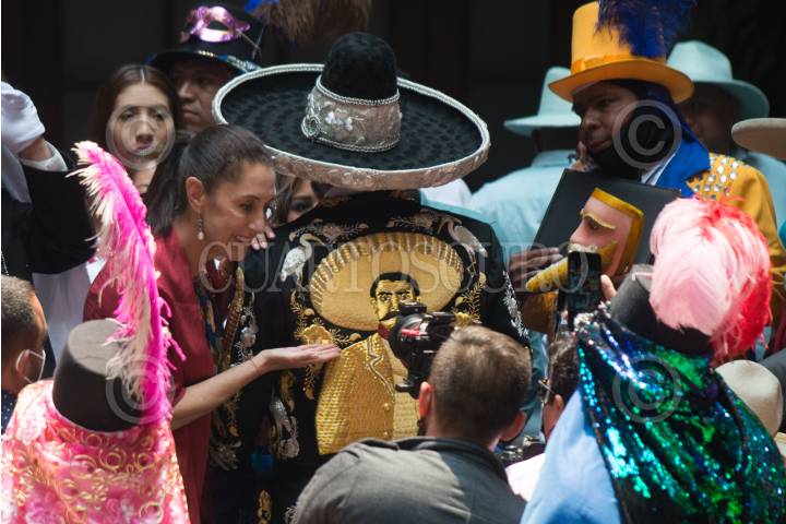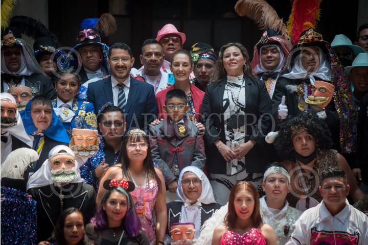 Claudia Sheinbaum Pardo, jefa de Gobierno, en compañía de Martí Batres, secretario de Gobierno capitalino, y la diputada Mónica Fernández, encabezaron la entrega de Reconocimientos a Representantes de Carnavales y Comparsas en la Ciudad de México.