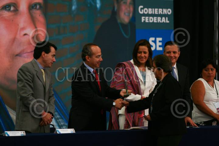 MÉXICO D.F., 12AGOSTO2008.- Gerardo Ruíz Mateos secretario de economía , Felipe Calderon Presidente de México, y su esposa la primera dama Margarita Zavala durante el 3.er encuentro internacional de empresarias sociales del fondo nacional de apoyos a empresas en solidaridad 2008, entregan reconocimientos a mujeres emrpesarias FOTO: SÁSHENKA GUTIÉRREZ /CUARTOSCURO.COM