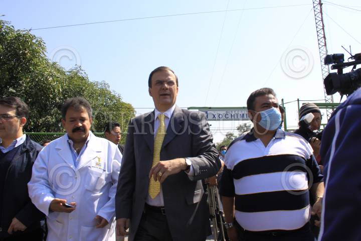 MÉXICO D.F., 25ABRIL2009.- El jefe de Gobierno Marcelo Ebrard, superviso los módulos que se encuentran ubicadosen la estación del tren ligero Xochimilco como apoyo que el gobierno capitalino brinda a la población donde se entregan cubrebocas como medidas preventivas ante el brote epidemiológico FOTO: SÁSHENKA GUTIÉRREZ/CUARTOSCURO.COM