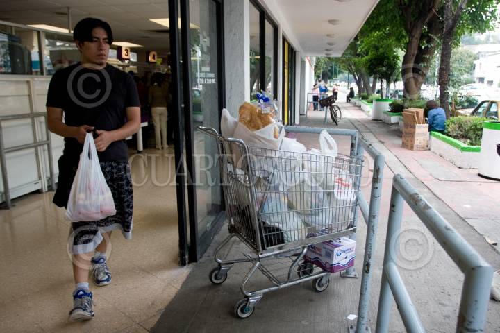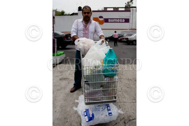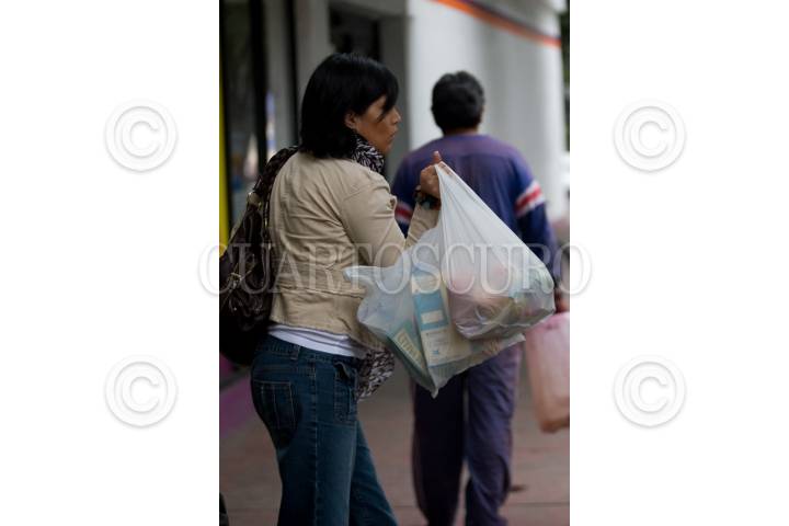 MÉXICO, D.F., 19AGOSTO2010.- El día de hoy, comenzaron a entregan bolsas hechas con materiales biodegradables, en los centros comerciales y tiendas de autoservicio, esto para evitar eventuales multas ya que a los centros comerciales que entreguen sus productos en bolsas de plástico, serán sancionados como lo marca la Ley de Residuos Sólidos del DF, que entro en vigor desde el año pasado. FOTO: GUILLERMO PEREA/CUARTOSCURO.COM