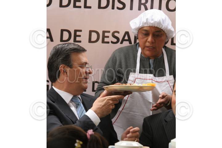 MÉXICO, D.F., 13ENERO2009.- Marcelo Ebrard Jefe del gobierno capitalino inauguro el primer comedor poular, con el cual empieza este programa social denominado (Comedores populares en apoyo a la economía familiar), este programa pretende entregar al principio un mil 200 comidas diarias pero se pretende alcanzar 250 raciones distribuyendo en total un millón 825 mil comidas anuales, el servicio de este comedor sera de 13:30 a 16:00 todos los días del año. FOTO: RICARDO CASTELAN/CUARTOSCURO.COM