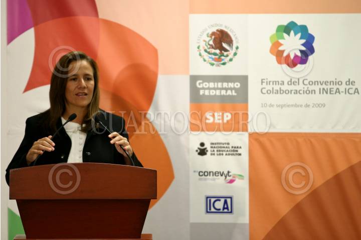MÉXICO, D.F., 10SEPTIEMBRE2009.- Margarita Zavala, esposa del presidente Felipe Calderón durante su mensaje en el evento de la Firma de Convenio INEA - ICA en donde también se entregaron certificados de primaria y secundaria a trabajadores de la construcción que concluyeron sus estudios. FOTO: RODOLFO ANGULO/CUARTOSCURO.COM