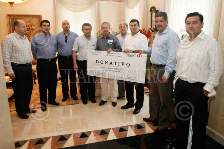 VILLAHERMOSA, TABASCO, 22MAYO2010.- Andrés Granier Melo, gobernador de Tabasco recibió en la Quinta Grijalva a ejecutivos del banco HSBC, quienes le entregaron un donativo para mejoras del hospital del Niño, en donde también estuvo el Secretario de Salud local; Luis Felipe Graham Zapata. FOTO: MARCO POLO GUZMÁN HERNÁNDEZ/CUARTOSCURO.COM