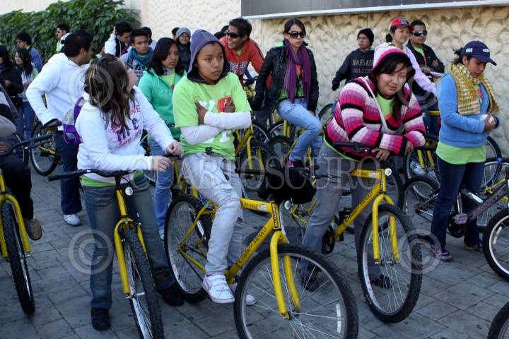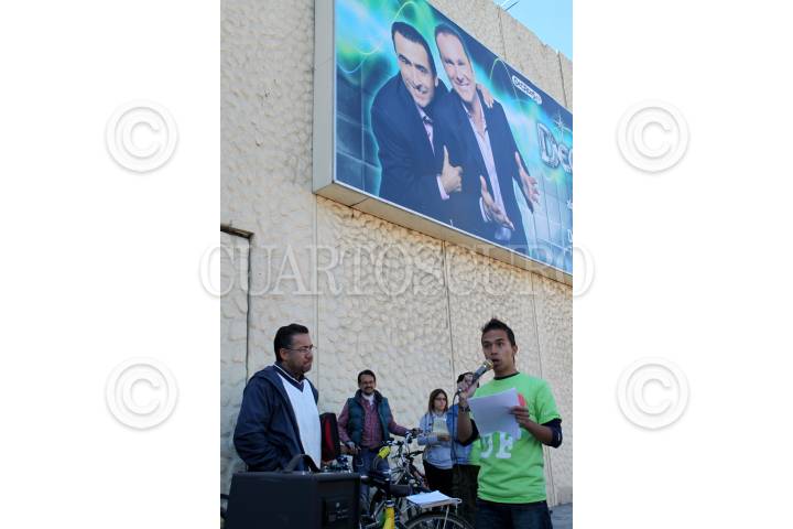 MÉXICO, D.F., 06NOVIEMBRE2010.- Jóvenes de la Brigada de Impulso al Uso de la Bicicleta del Instituto de la Juventud del D.F encabezados por su director Javier Hidalgo Ponce entregaron un documento en las instalaciones de Televisa Chapultepec haciendo uso de derecho de réplica, con respecto a una cápsula sobre las bicicletas en la ciudad. FOTO: RODOLFO ANGULO/CUARTOSCURO.COM
