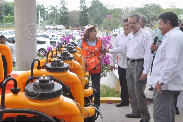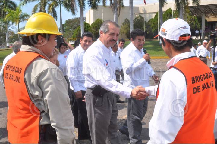 TAPACHULA, CHIAPAS, 18FEBRERO2011.- José Ángel Cordova Villalobos, secretario de Salud en compañía de Rita Josefina Claverie, embajadora de Guatemala en México y James Gomez, secretario de Salud estatal dieron inicio al encuentro binacional de salud México - Guatemala donde se entregaron 500 pabellones impregnados de insecticida a Guatemala, vehículos y equipo a la secretaria de Salud del estado. FOTO: EDUARDO MORALES/CUARTOSCURO.COM