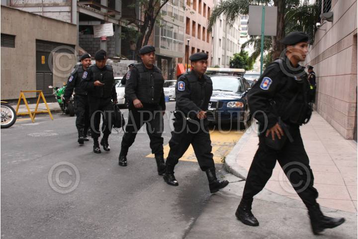 MEXÍCO. D.F. 30AGOSTO2007.- Fuerzas especiales de seguridad publica entraron a la Torre Mayor con perros entrenados para detectar aparatos explosivos por un aparante atententado de bomba, por locual usaron trajes especiales para encontrar dicho artefacto. FOTO:RICARDO CASTELAN/CUARTOSCURO.COM