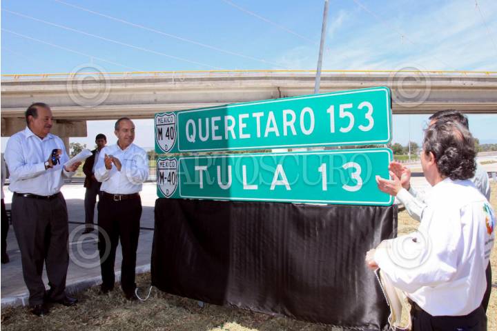 MUNICIPIO DE AHOME, SINALOA., 16FEBRERO2009.- Alberto Cardenas Titular de SAGARPA, Jesús Aguilar Padilla Gobernador de Sinaloa, Felipe Calderón Presidente de México inauguraron el paso superior vehicular, entronque a Topolobampo en la carretera Federal 15 del tramo a Culiacan-Mochis FOTO: ALFREDO GUERRERO/CUARTOSCURO.COM