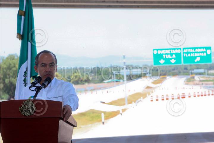 ATITALAQUIA, HIDALGO, 25AGOSTO2009.- Felipe Calderón Hinojosa, Presidente de la república, durante la inauguración del tramo carretero, entronque Pachuca-Tula 1 del libramiento norte de la ciudad de México. FOTO: ALFREDO GUERRERO/CUARTOSCURO.COM