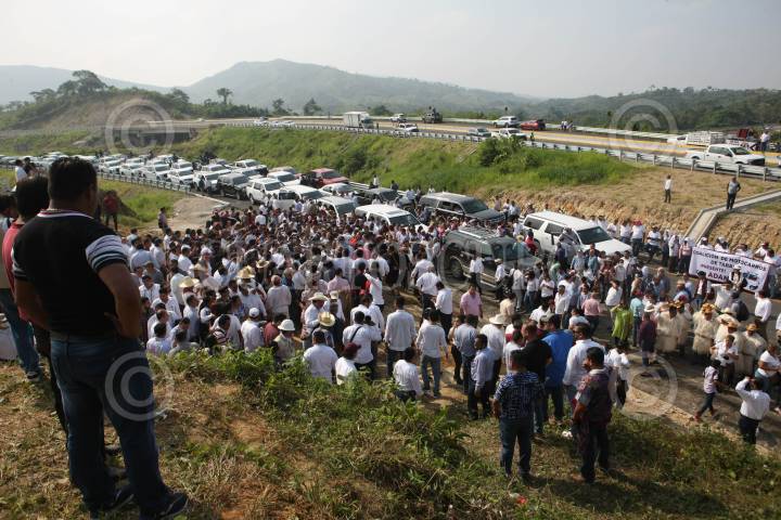OAXACA, OAXACA 04MARZO2009.- Habitantes de comunidades de los Valles Centrales de San Pablo Guilá, bloquearon el entronque de la calle “Manuel Ruiz” para exigir a dependencias federales y estatales la entrega de recursos de los Ramos 28 y 33 para obras sociales y proyectos productivos. FOTO: MAX NÚÑEZ/CUARTOSCURO.COM