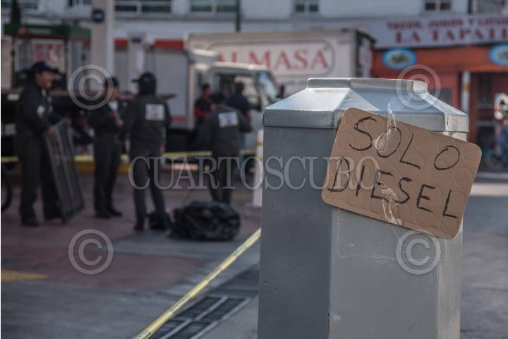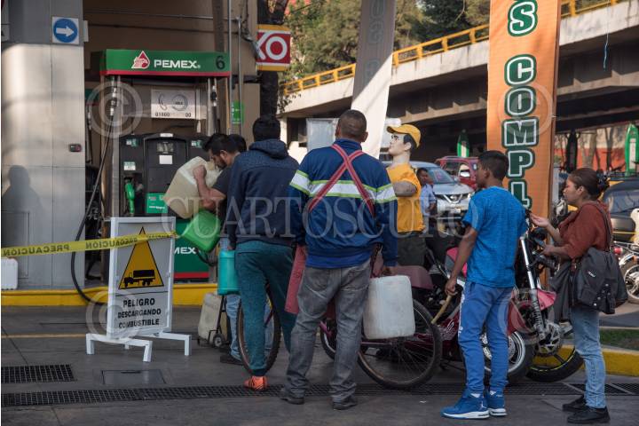CIUDAD DE MÉXICO, 09ENERO2019.- Este miércoles continuó el desabasto de gasolina en algunos puntos de distribución. Algunas gasolineras se mantienen cerradas, otras venden sólo algún tipo de gasolina, e incluso venden el combustible a las personas que asisten con recipientes. En la imagen, la gasolinera ubicada entre avenida Andrea del Santo y avenida Revolución. FOTO: MARIO JASSO /CUARTOSCURO.COM