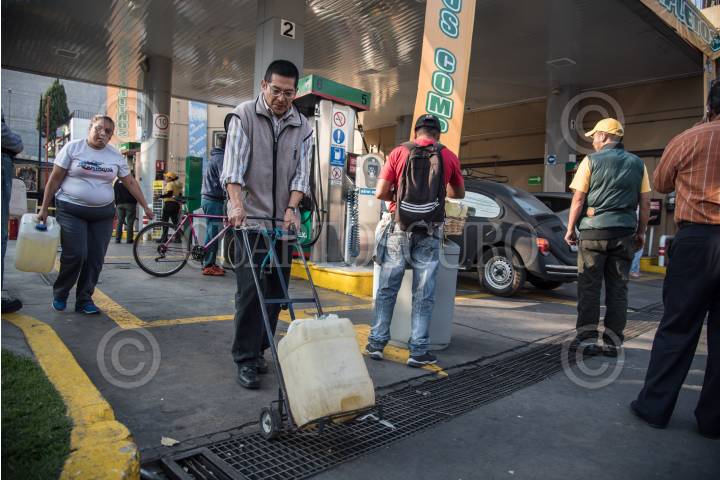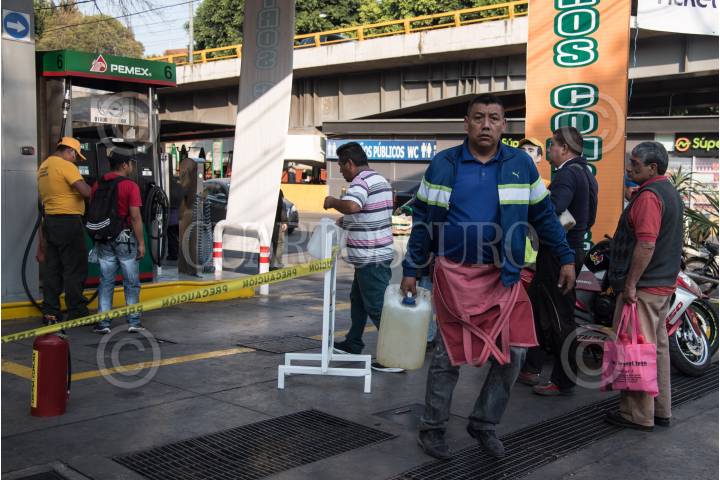 CIUDAD DE MÉXICO, 09ENERO2019.- Este miércoles continuó el desabasto de gasolina en algunos puntos de distribución. Algunas gasolineras se mantienen cerradas, otras venden sólo algún tipo de gasolina, e incluso venden el combustible a las personas que asisten con recipientes. En la imagen, la gasolinera ubicada entre la calle Lorenzo Boturini y avenida Congreso de la Unión. FOTO: MARIO JASSO /CUARTOSCURO.COM