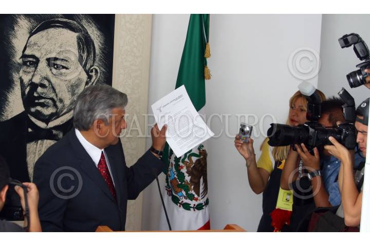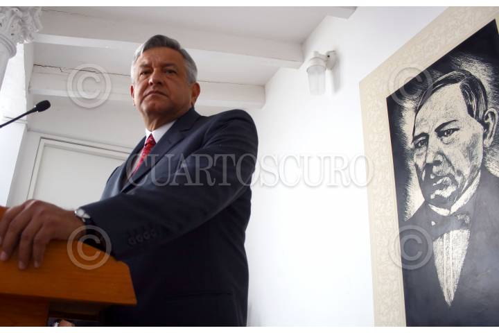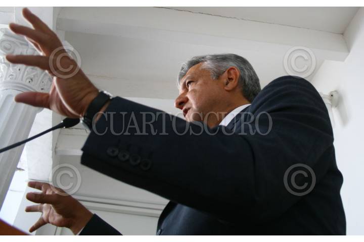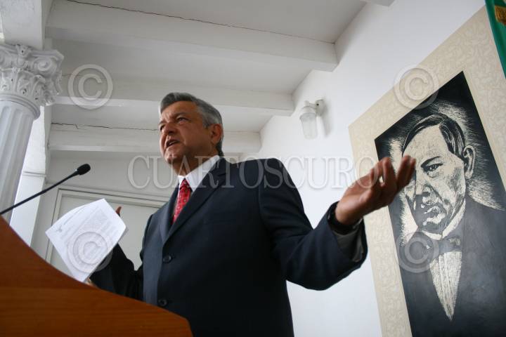 MÉXICO,D,F 04FEBRERO2008.- Ándres Manuel López Obrador durante la conferencia de prensa que ofreció en donde anunció que enviaria una carta a Emilio Azcárraga Jean Presidente de Televisa , ademas de otros medios de comunicación, donde solicita tiempos y espacios televisivos, para dar a conocer al pueblo su posición de la reforma energetica. FOTO: SASHENKA GUTIERREZ/CUARTOSCURO.COM