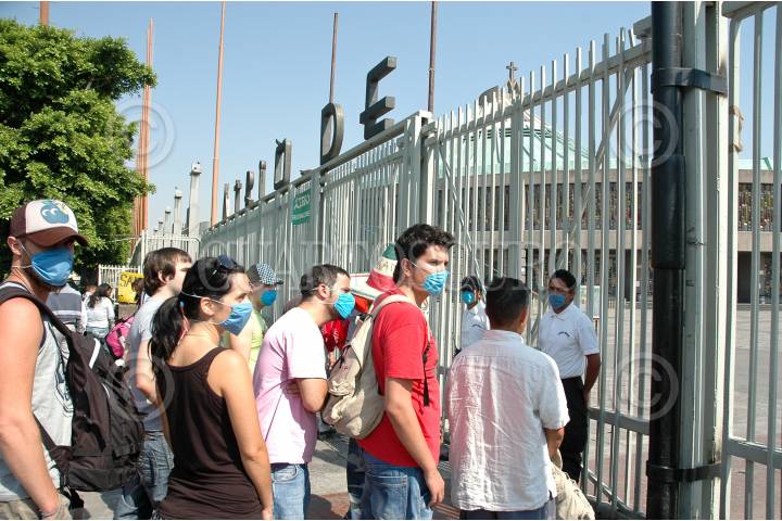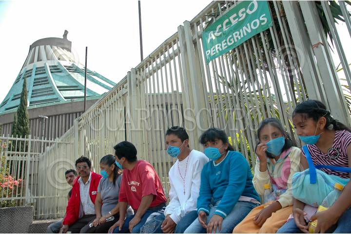 MÉXICO D.F., 26ABRIL2009.- Feligreses con cubre bocas acuden a la Basilica de Guadelupe que fue cerrada y en la cual la misa se celebro a puerta cerrada debido a la epidema de influenza porcina. FOTO: RODOLFO ANGULO/CUARTOSCURO.COM