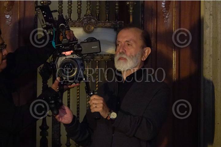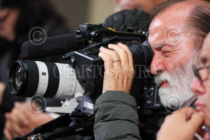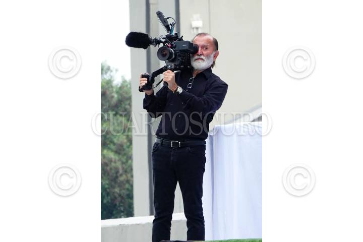 CIUDAD DE MÉXICO, 25AGOSTO2025.- El productor y camarógrafo Epigmenio Ibarra graba aspectos de la Mañanera del Pueblo la cual fue encabezada por Claudia Sheinbaum Pardo, en Palacio Nacional. FOTO: MOISÉS PABLO/CUARTOSCURO.COM