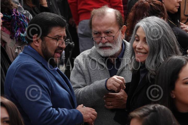 CIUDAD DE MÉXICO, 09ENERO2024.- Epigmenio Ibarra, productor de televisión, y su esposa Verónica Velasco durante el 4to informe de la Fiscal Ernestina Godoy, realizado en el Altar a la Patria. FOTO: GRACIELA LÓPEZ /CUARTOSCURO.COM