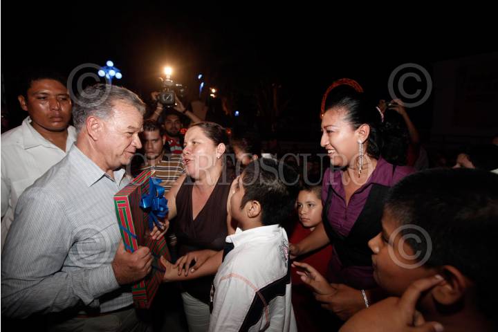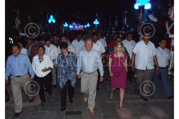 VILLAHERMOSA, TABASCO, 02DICIEMBRE2009.- La noche de ayer fue inaugurado en el parque Manuel Mestre la Villa Navidad, donde el gobernador Andrés Granier Melo y el alcalde de Centro Evaristo Hernández Cruz, con sus esposas, realizaron un recorrido para ver las atracciones con que se cuenta en el lugar. FOTO: MARCO POLO GUZMÁN HERNÁNDEZ/CUARTOSCURO.COM