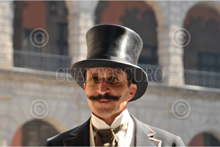 MÉXICO, D.F., 09DICIEMBRE2009.- Aspectos de la filmación de "El atentado", con un guión de Fernando León y Vicente Leñero, basado en la novela "El expediente del atentado", la cual narra los hechos perpetrados en 1897 por un dipsómano en contra del presidente de la República, General Porfirio Díaz. FOTO: FRANCISCO SEGURA/CUARTOSCURO.COM