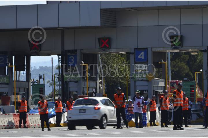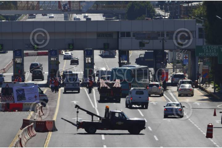 MÉXICO, DF., 19DICIEMRBE2013.- Empezó la migración de capitalinos por la temporada decembrina de vacaciones. Poco a poco se enfilan vehículos de particulares en la caseta de la carretera libre México-Cuernavaca. Se espera que el flujo vehicular de salientes aumente entre las 19:00 horas de hoy y el fin de semana del 21 y 22 de diciembre. Autoridades federales contribuyen al fácil acceso de los vehículos indicándoles el módulo que se encuentra disponible. FOTO: MARÍA JOSÉ MARTÍNEZ /CUARTOSCURO.COM
