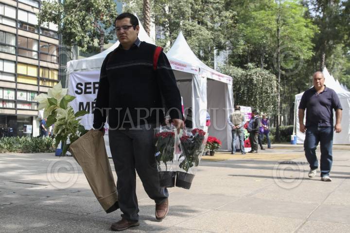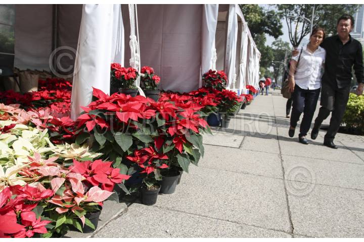 MÉXICO, D.F., 28NOVIMEBRE2015.- La Feria de las Nochebuenas CDMX 2015 arrancó en su primer día de actividades sobre Paseo de la Reforma. Diferentes tipos de nochebuena se ofertan en las carpas que se encuentran a un costado de la Glorieta de la Diana Cazadora. FOTO: MARÍA JOSÉ MARTÍNEZ /CUARTOSCURO.COM