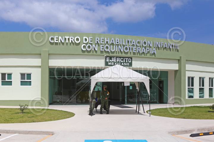 Imagen del exterior del Centro de Rehabilitación Infantil y Equinoterapia para hijos y familiares del personal militar del Ejercito Mexicano.
