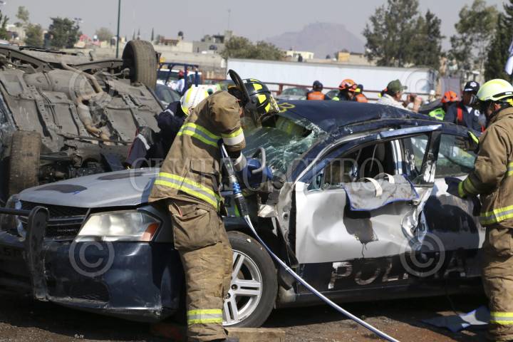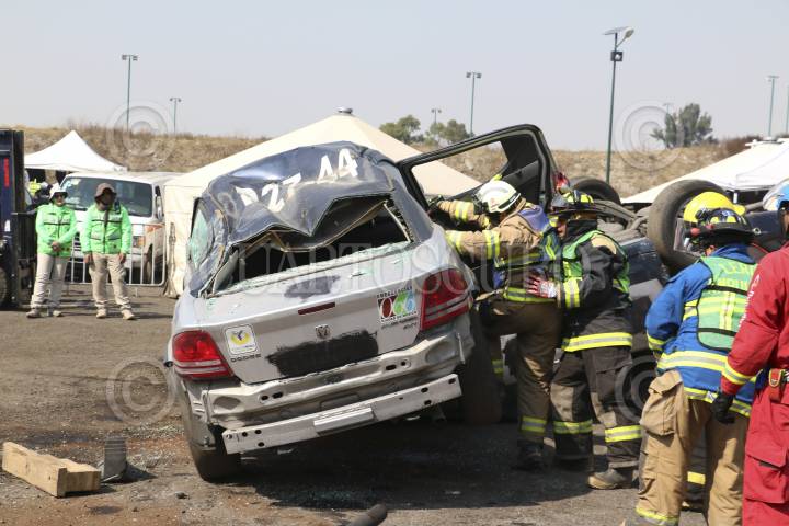 MÉXICO, D.F., 19DICIEMBRE2015.- Personal de rescate de todas diversas dependencias de rescate participaron en el segundo Reto Nacional de Extracción Vehicular que tiene como objetivo la homologación, capacitación y mejora en las técnicas de atención médica prehospitalaria en pacientes que se encuentran atrapados o confinados en vehículos siniestrados. Dicha exhibición se realizó en la base de Fuerza de Tarea de al SSP-DF. FOTO: SAÚL LÓPEZ /CUARTOSCURO.COM