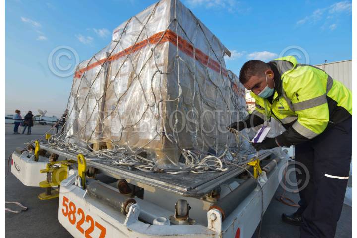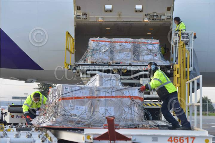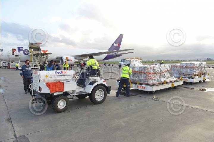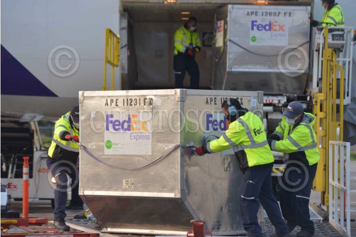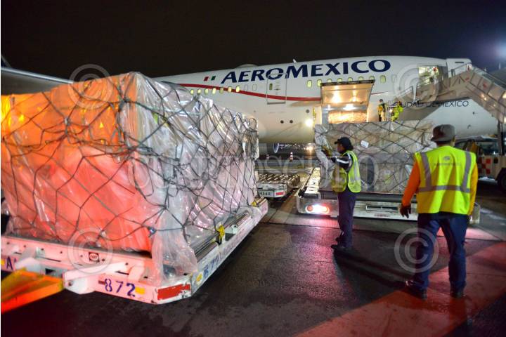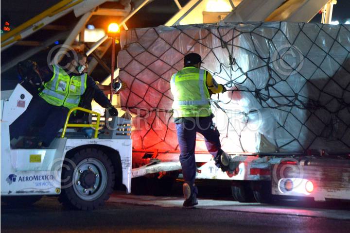 Llegó un cargamento con material médico para atender a pacientes de Covid-19, en el Aeropuerto Internacional de Toluca.
