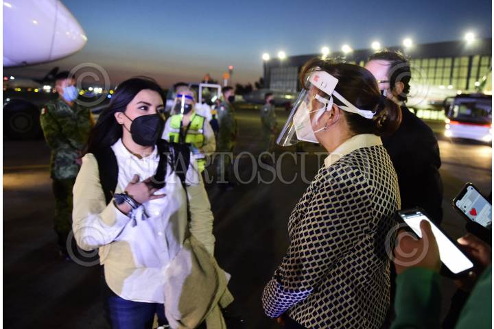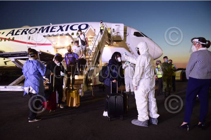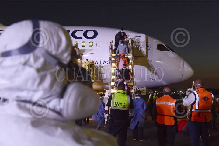 Llegada de 50 mexicanos repatriados e insumos médicos en el vuelo 18 del Puente Aéreo México-China.