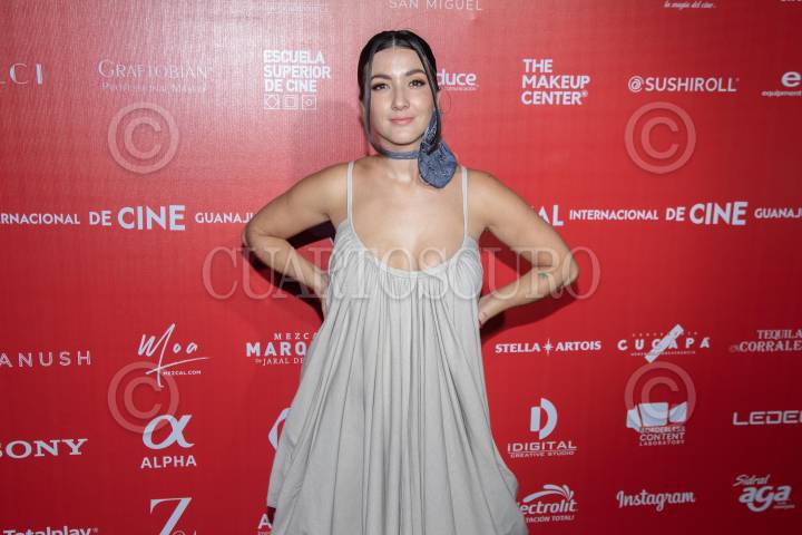 Eréndira Ibarra a su paso por la alfombra roja previo al homenaje que se le rindió al cineasta Luis Estrada, en el marco del Festival Internacional de Cine de Guanajuato (GIFF) en su edición numero 26.