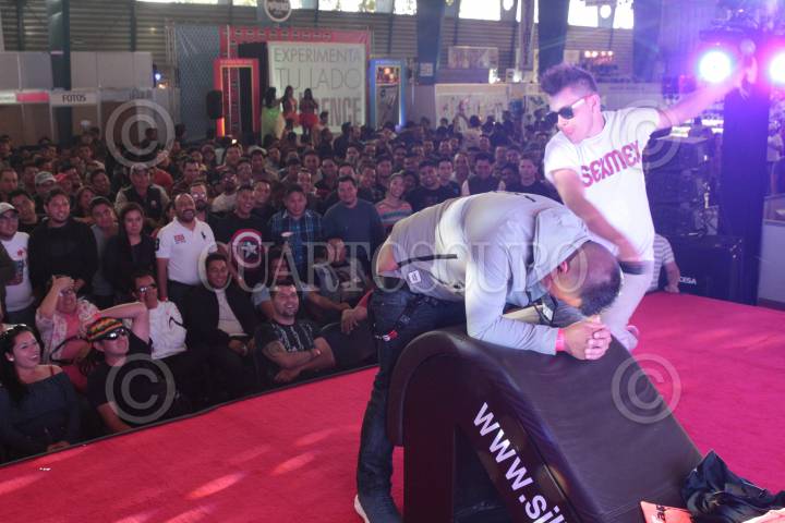 CIUDAD DE MÉXICO, 05MARZO2017.- Se celebró el último día del SexMex, una feria dedicada a la sexualidad y al sexo, en el Palacio de los Deportes. Cientos de capitalinos acudieron a dejar volar su imaginación y expandir su mente en torno al eros. Las mujeres disfrutaron de hombres con cuerpos esculturales, mientras que algunos machos mexicanos se dejaron cinturonear para explorar el mundo del sadomasoquismo. FOTO: MOISÉS PABLO /CUARTOSCURO.COM